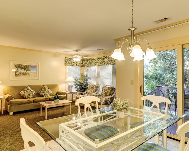 Experience the ultimate Hilton Head Island getaway at the Village at Palmetto Dunes, with its stylish two-bedroom townhome with a bonus loft in the heart of the Palmetto Dunes Resort. Just steps away from the beach and surrounded by scenic bike paths, our townhomes provide the perfect setting for your Hilton Head vacation with family and friends.The townhome features a well-appointed kitchen with a breakfast counter flowing into the dining area, ideal for entertaining. Step onto your private deck through glass sliding doors, boasting stunning views of the golf course or lagoon. The living room offers comfort with a large picture window, Cable TV, DVD player, and a sleeper sofa. Retreat to the master bedroom with a luxurious King-sized bed and a private master bath complete with a soaking tub and walk-in shower. Additional accommodations include a secondary bedroom with two twins and a guest bath, along with a bright loft featuring twin beds and a half bath—ensuring plenty of space for everyone. Escape to Hilton Head Island and create unforgettable memories at our Village at Palmetto Dunes townhomes.
